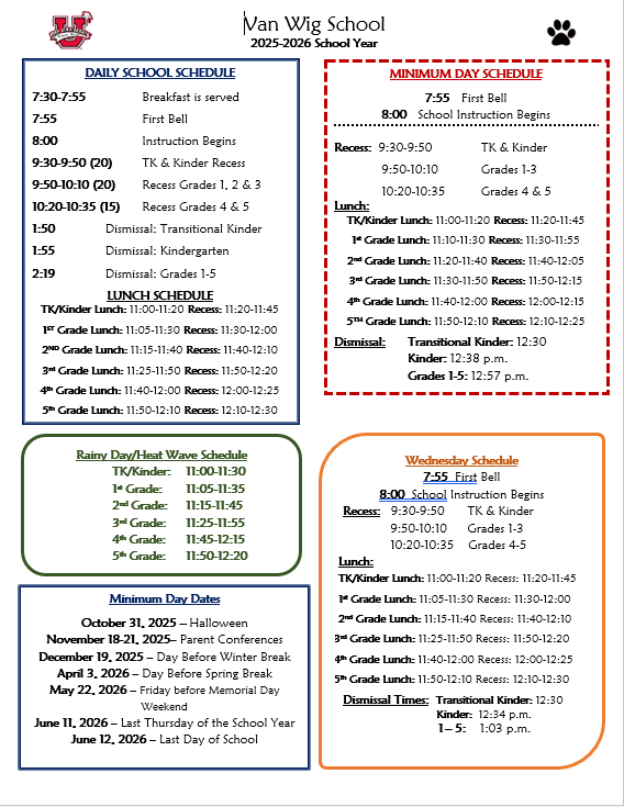 Bell Schedule and Master Calendar
